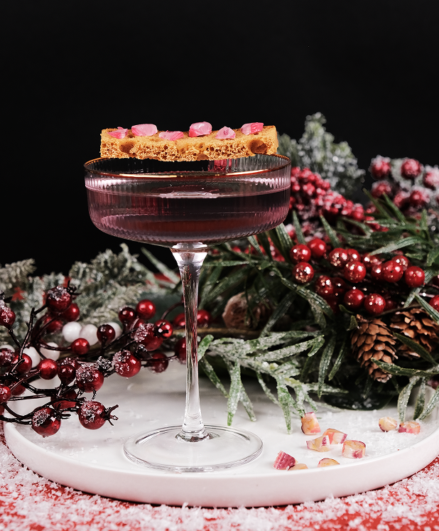 Un cocktail de fête aux notes boisées et élégantes ! Gin infusé aux aiguilles de pin, vermouth blanc et sirop de sucre d’orge se marient pour un moment raffiné et festif.