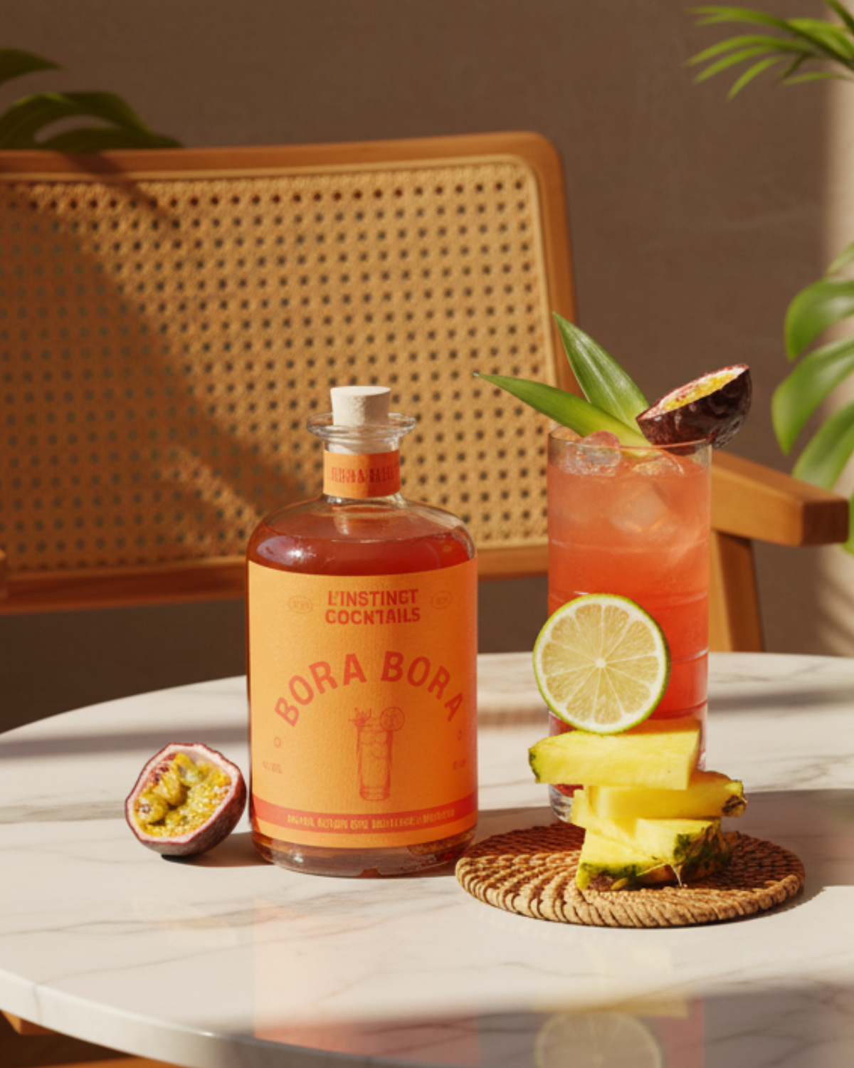 Plongez directement sous les tropiques avec Bora Bora, avec un mélange envoûtant où la douceur du jus de pomme Cox’s rencontre la chaleur d’un rhum blanc infusé à la cannelle. Le triple sec apporte une pointe d’éclat, la noix de coco enveloppe le tout d’une texture douce, et une touche subtile de fleur d’oranger vient signer ce cocktail d’une note solaire et élégante.