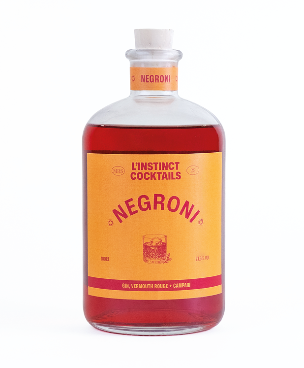 Liste des ingrédients : Dry gin, vermouth rouge et campari.