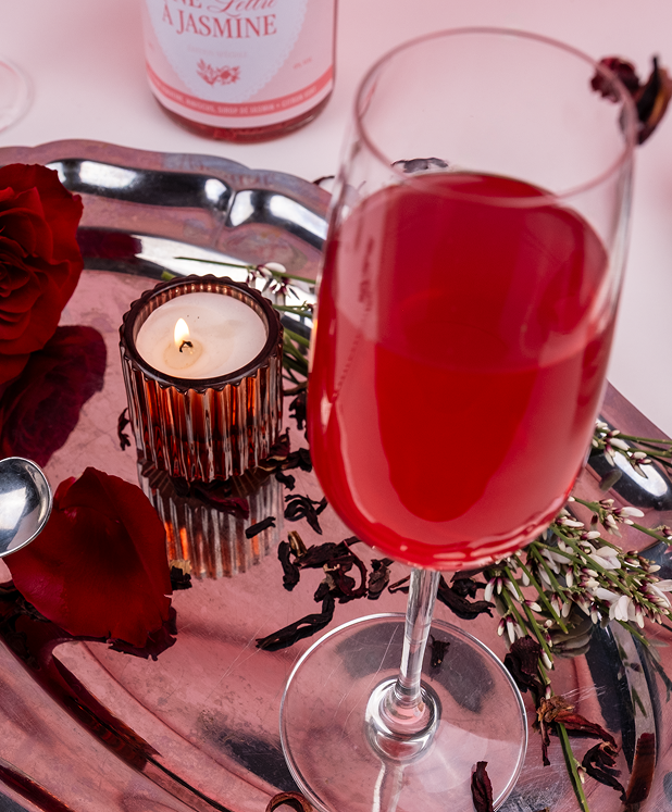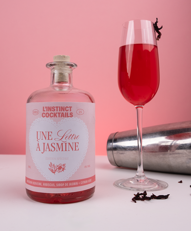Laissez-vous transporter par Une lettre à Jasmine : une correspondance délicate entre la fraîcheur de la verveine, l’éclat de l’hibiscus et la douceur envoûtante du sirop de jasmin, le tout relevé d’une pointe de citron vert.