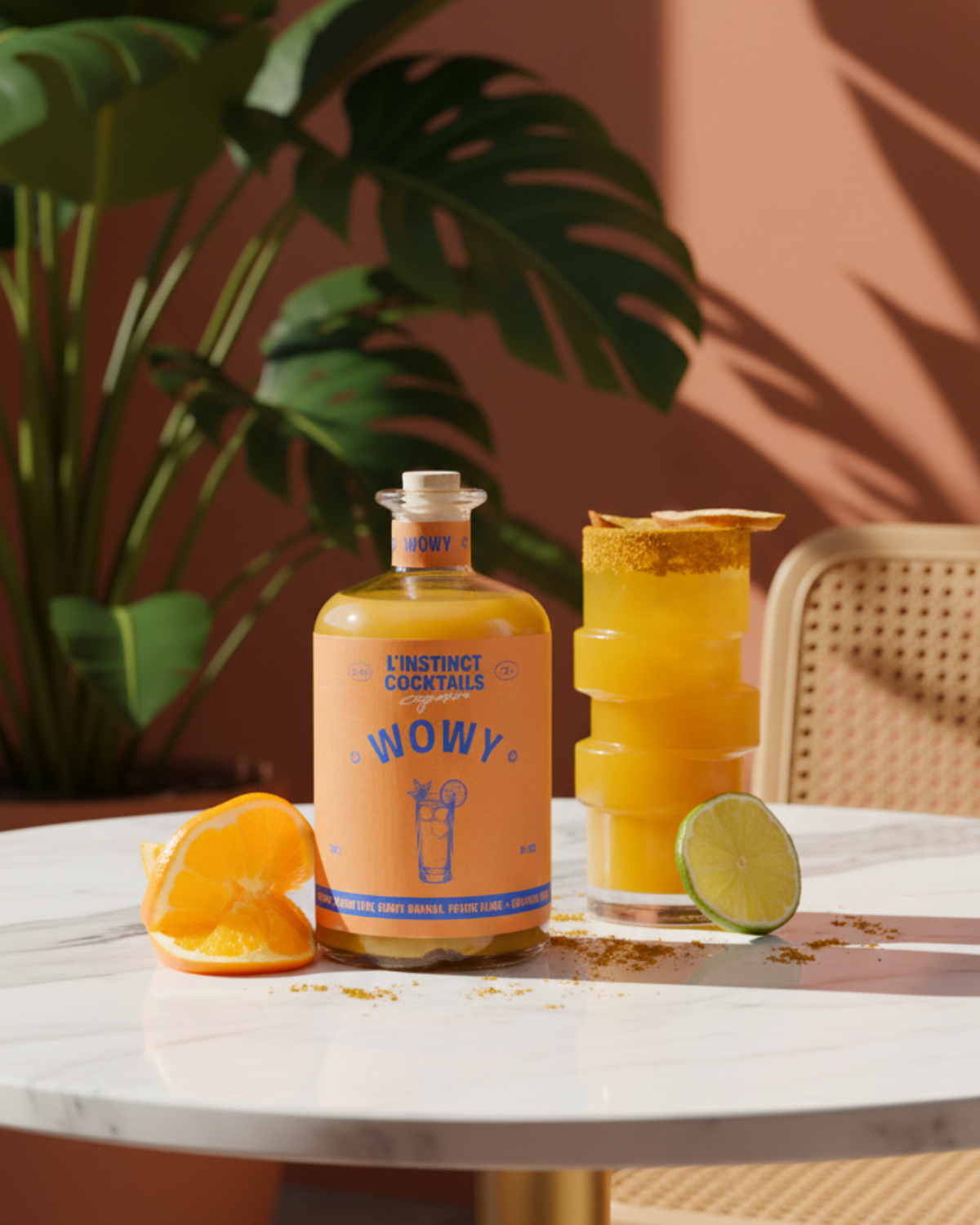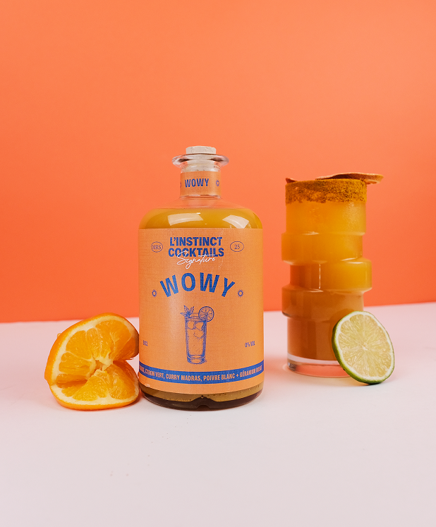 Un cocktail audacieux et joyeux ! Jus d’orange et de citron vert, un filet de sirop de sucre, curry madras, poivre blanc et arôme de géranium rosat offrent une boisson originale, parfumée et pleine de pep’s.